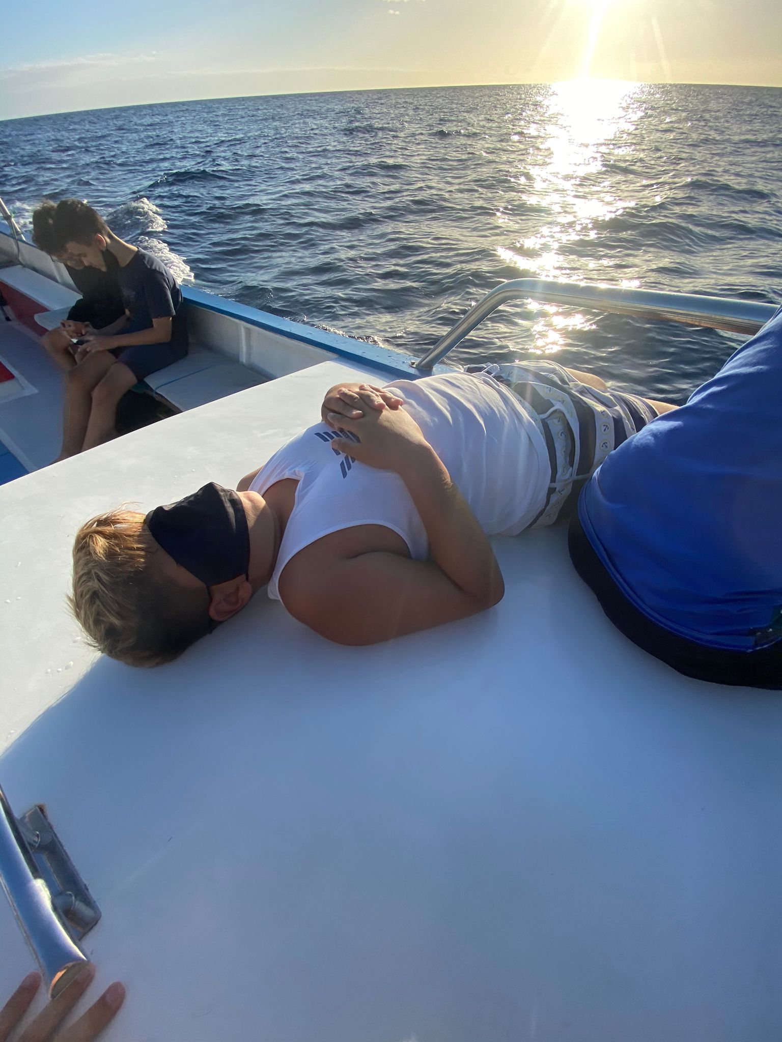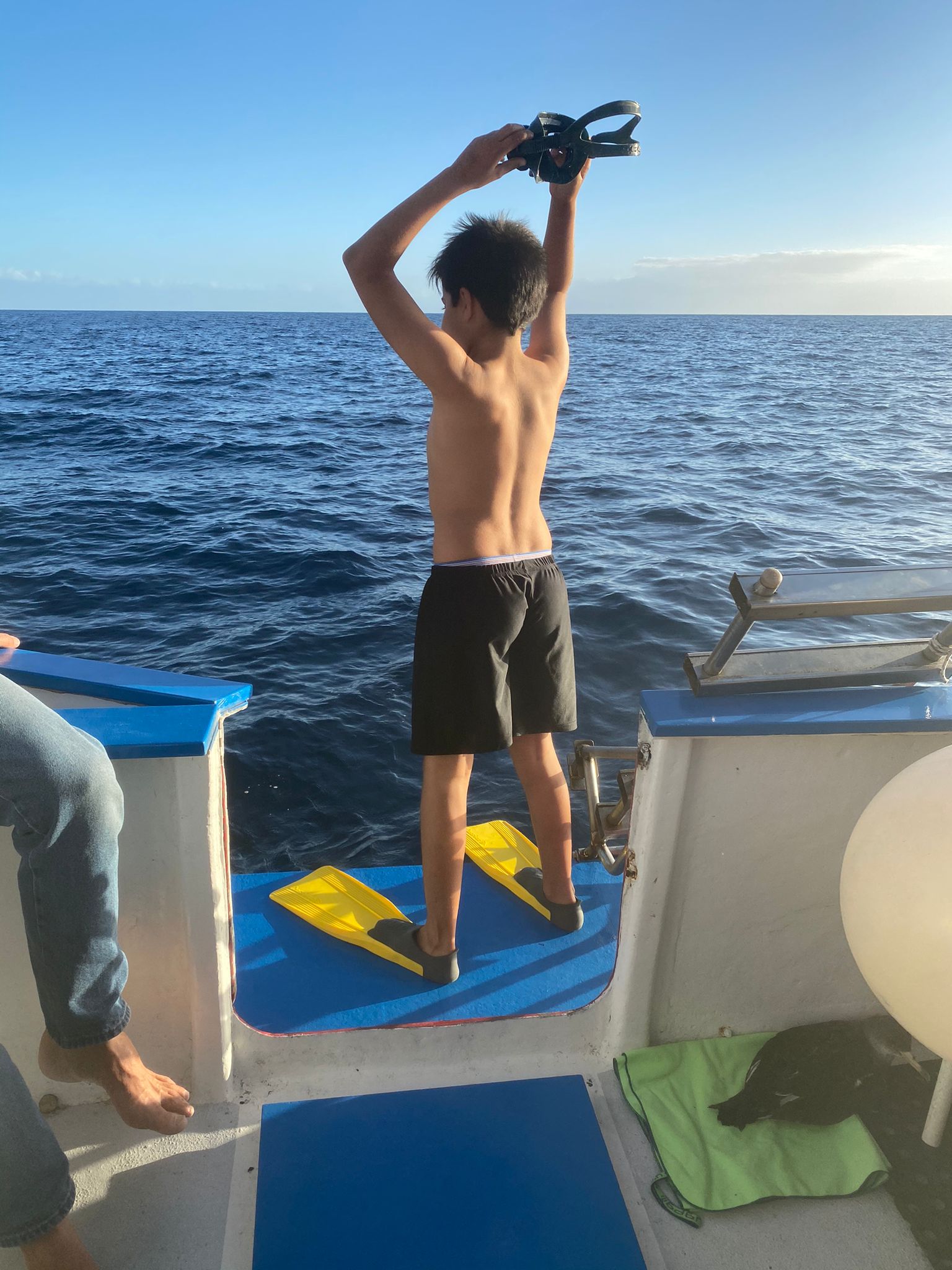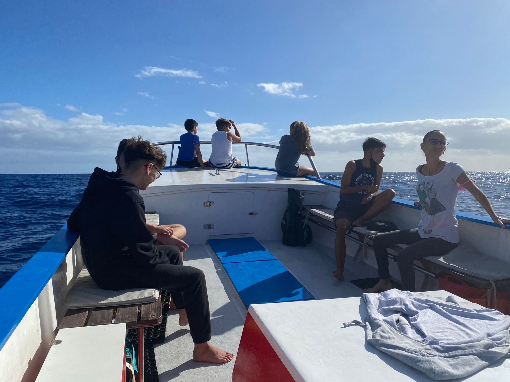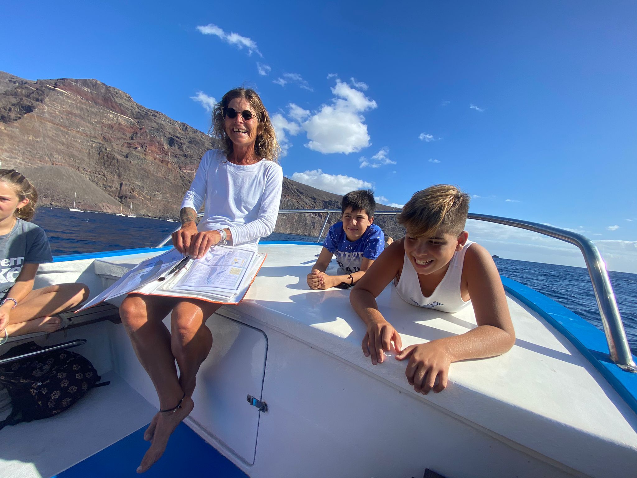 Auf der Ausfahrt begegneten sie einer Gruppe Grindwale, von denen sich einige Tiere dem Boot dicht näherten – Wer beobachtet hier wen? – und erfuhren einiges über die Biologie und das Sozialverhalten dieser Tiere. Zudem hat die Truppe bei ihrer Ausfahrt einen jungen Sepiasturmtaucher aus dem Wasser gerettet, der so durchfeuchtet war, dass er nicht mehr flugfähig war und ohne Hilfe vermutlich nicht überlebt hätte. Der Vogel wurde später abgeholt und in die Auffangstation verbracht, die zu dieser Jahreszeit auf solche Fälle schon vorbereitet ist. Am Ende war auch noch Zeit für eine Badepause für die Kinder, bevor es in den Hafen zurück ging. Es war eine gelungene Tour, die nicht nur Wissen vermittelt, sondern auch viel Spaß bereitet hat.
